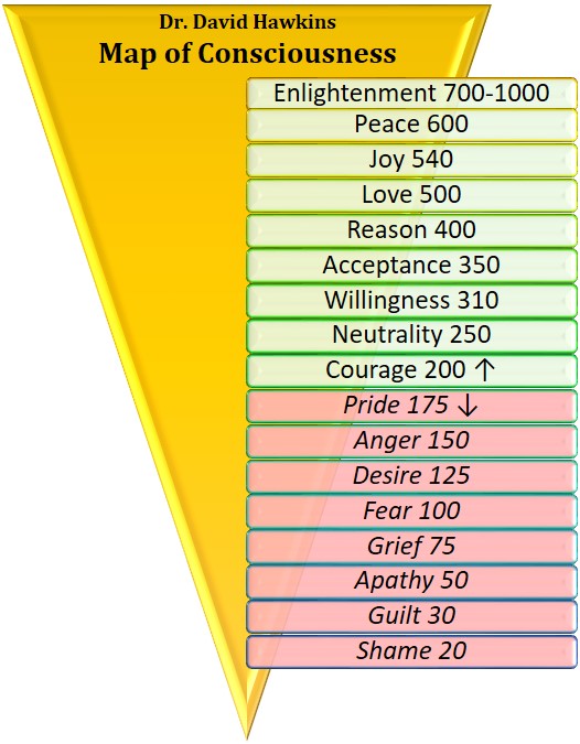 “That which weakens life energy is to be avoided: shame, guilt, confusion, fear, hatred, pride, hopelessness, and falsehood. That which uplifts life is to be realized: truth, courage, acceptance, reason, love, beauty, joy, and peace.” –David R. Hawkins, M.D., Ph.D.